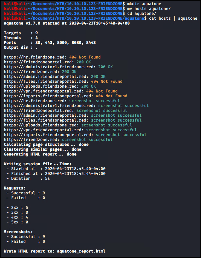 With Aquatone on our system, let’s make a new directory to store our loot, move our hosts file (containing our targets) into, change into it ourselves, and then run the tool.