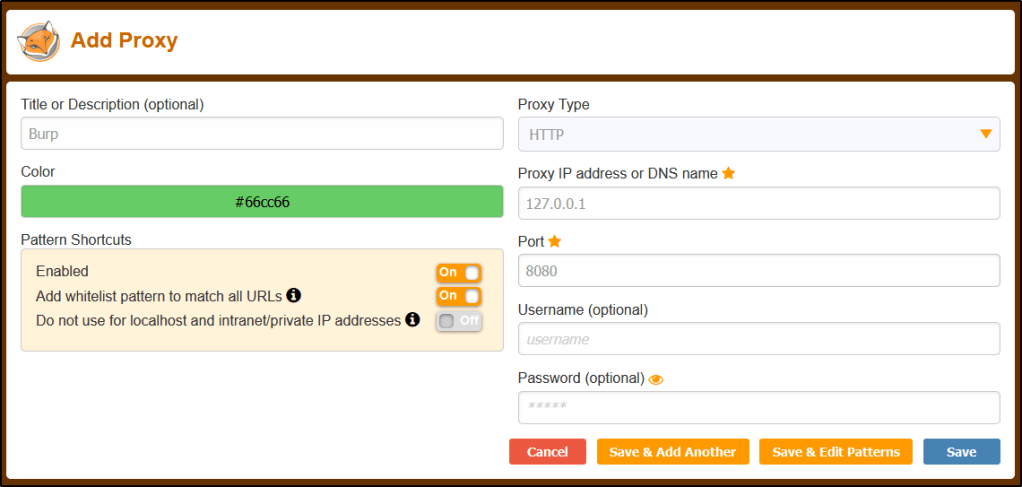 With this in place, we can easily route traffic in/out of Burp without having to dive deep into Firefox’s settings.