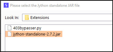 Head back over to Burp Suite and select the Extender tab. Go into Options, and select Select File.
