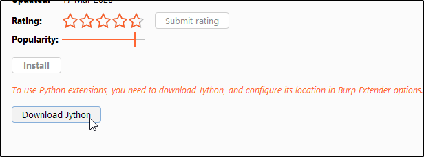 Any extension written in Python will require us to to set up Jython. For example, clicking into the Autorize extension will display an option to Download Jython.