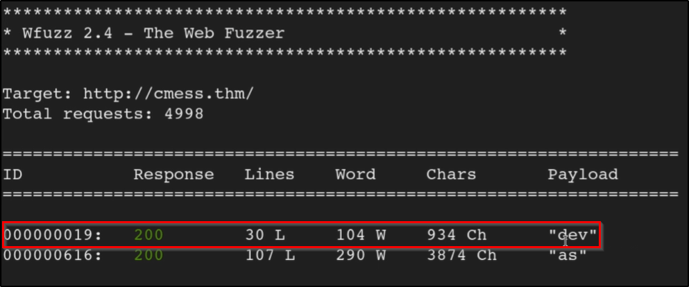 This will return a list of subdomains that do not contain a word count of 290. If you get a successful result, make sure you’re able to resolve the subdomain as well before trying to browse to it. If you’re in a CTF-type environment, you may need to update your /etc/hosts file.