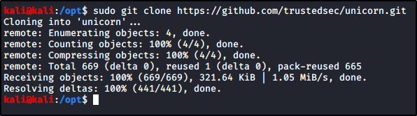 sudo git clone https://github.com/trustedsec/unicorn.git