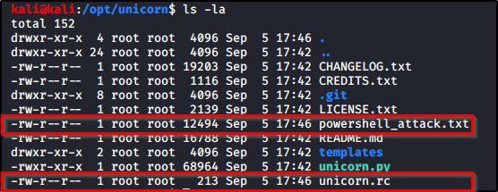 Let’s copy both of these files and move them over to where we want them. I will place powershell_attack.txt in a directory that I’m hosting up w/ a webserver, and then I’ll place unicorn.rc into a directory that I want to start my Metasploit listener within.