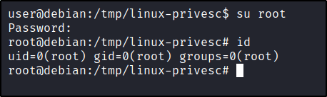 Once the file has been changed, you can now switch to the root user using the password you passed to the mkpasswd command.su root