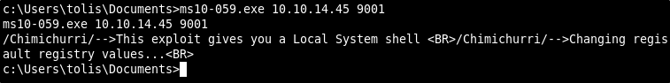 - Using sc.exe, we’re able to modify the binary path used by this service to instead launch the following command: