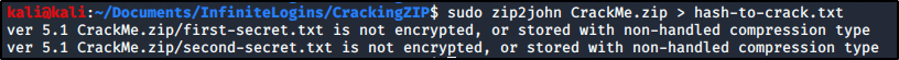 sudo zip2john CrackMe.zip > hash-to-crack.txt