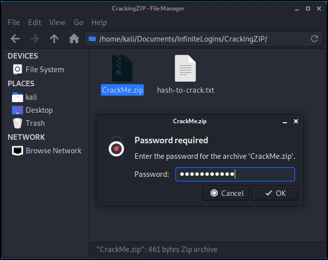 In order for us to crack this password, we need to first extract its hash. Luckily, John The Ripper has everything we need built-in. Let’s spin up a Terminal window and get started. Start by making sure you’re in the correct directory that contains the ZIP file.